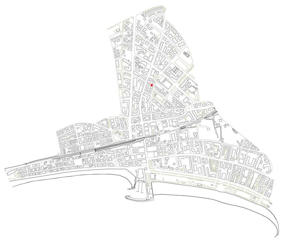 The interior is develop with a central piece around which the other spaces are arranged. In this way, the space lost by the dealer is minimized while all the other parts can face outside.